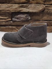 Botín safari realizado en piel serraje en color granate con interior forrado también en piel.