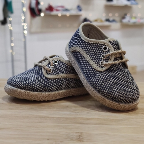 Loneta ecológica realizada en lino combinado con suela simulando esparto con cierre de cordones para un mejor ajuste.