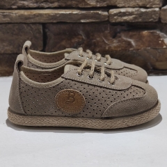 Blucher realizado en serraje perforado, con cinta simulando suela de esparto.