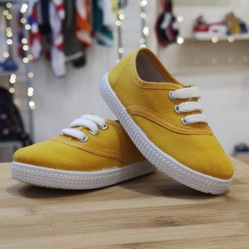 Loneta algodón ecológico, realizado con tejidos orgánicos y reciclados, con cierre de cordones para una mayor sujeción, suela de goma antideslizante muy flexible.