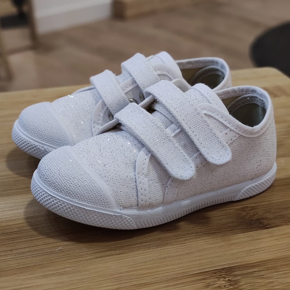 Loneta algodón con cierre de dos velcros para que ponerlas sea más rápido y cómodo, con una gran abertura para el calce, tiene una horma muy buena para esos pies mas anchos, se adapta perfectamente.