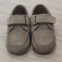 Zapato mocasín realizado en serraje con interior forrado en su totalizad en piel. Cierre con velcro para que vayan más sujetos, ya que es un estilo de zapato que se descalza con facilidad.