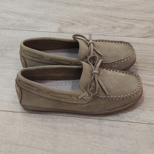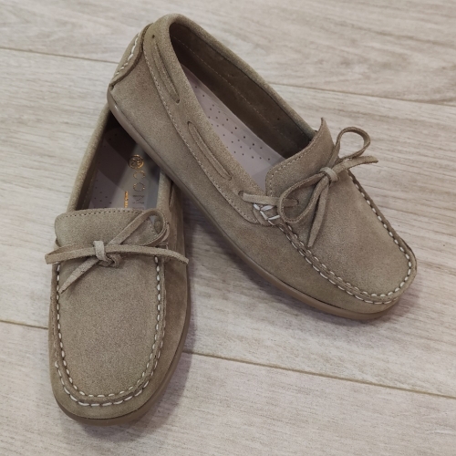 Zapato mocasín lazo realizado en serraje con interior forrado en su totalizad en piel.