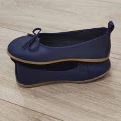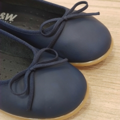 Clásica bailarina de piel en tono blanco con lazo de cordón fino en la parte delantera. Interior forrado en textil, suela antideslizante y muy flexible.