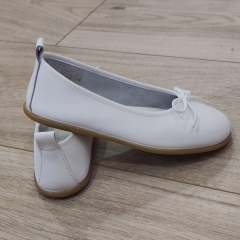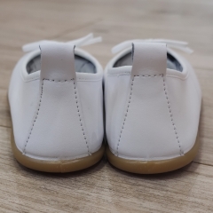 Clásica bailarina de piel en tono marino con lazo de cordón fino en la parte delantera.