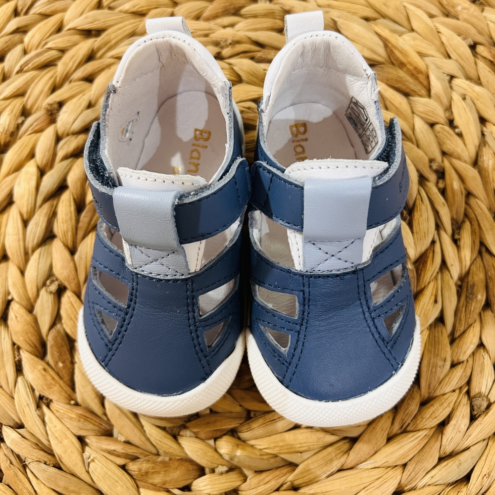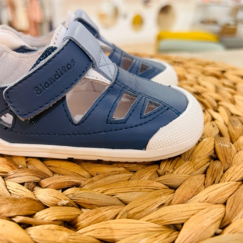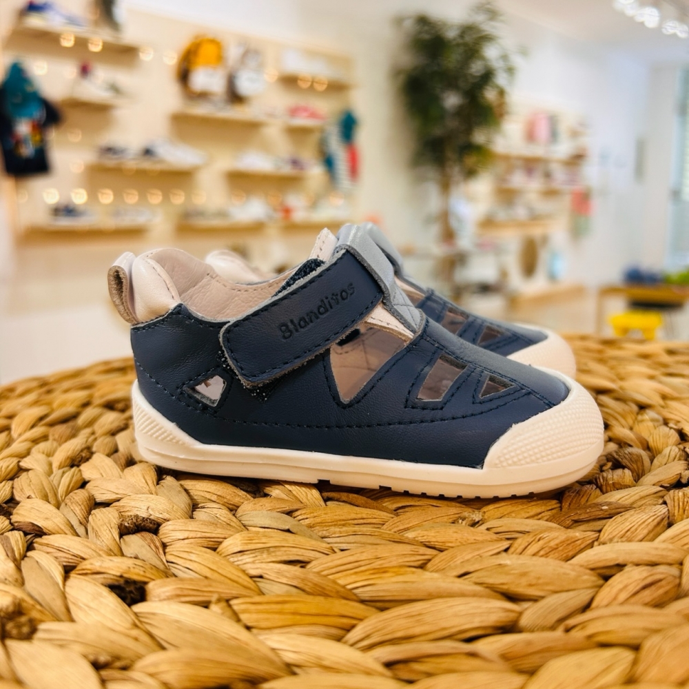 Sandalia respetuosa con el pie de los más pequeños. Suela plana (sin drop), muy ligera y antideslizante.