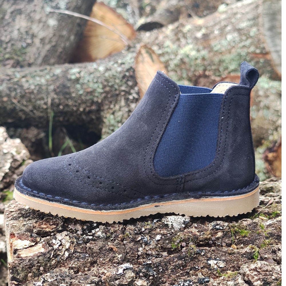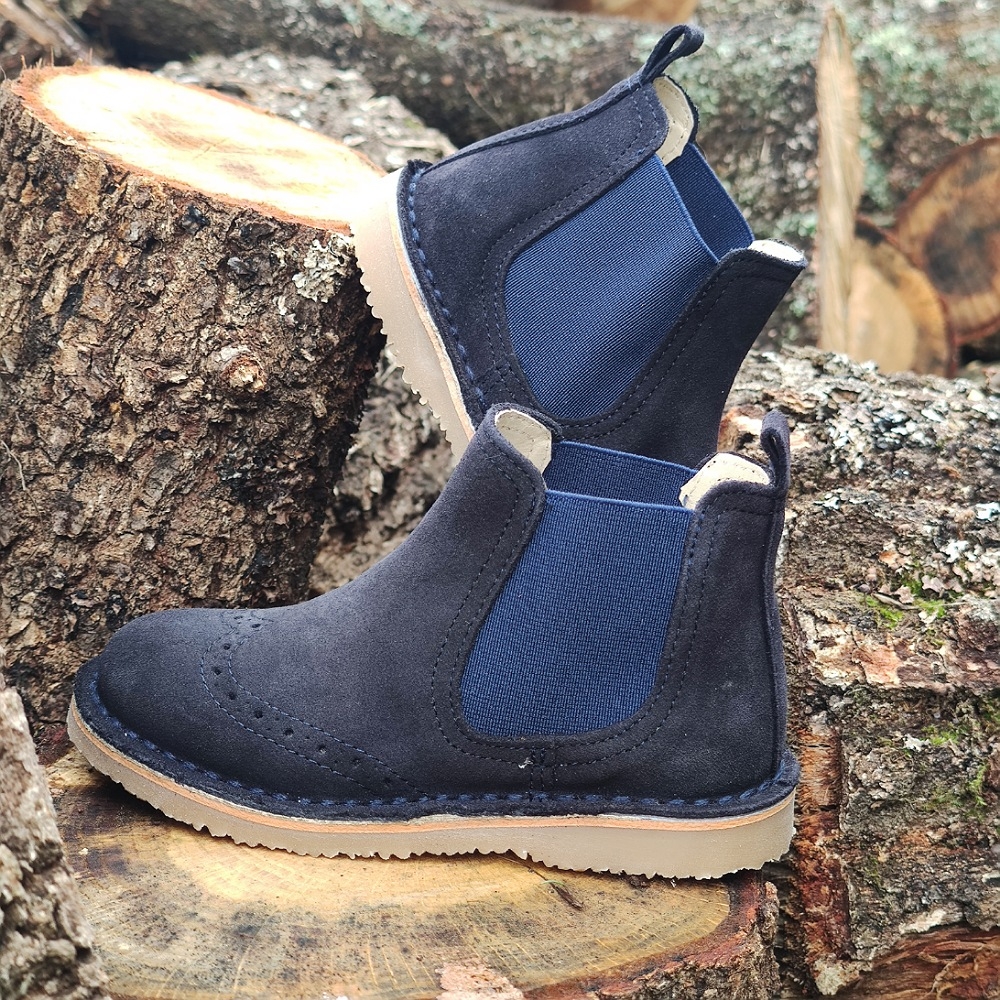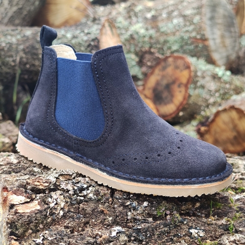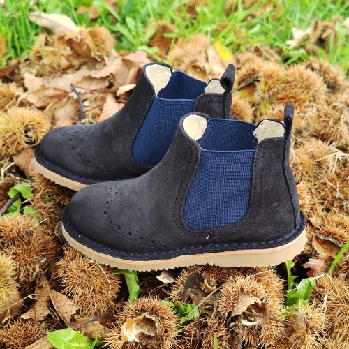 Botín tipo Chelsea, realizado en serraje con forro interior en piel, goma en los laterales. Suela de goma, antideslizante y muy flexible.