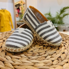 Alpargatas rayas tipo camping, con elástico en la zona del empeine para que se ajusten al pie. Faciles de poner y sacar.