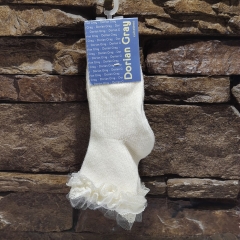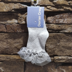 Calcetín liso de algodón con puntilla y tul en el puño. Es un modelo muy versátil ya que tanto nos encaja para un zapato arreglado como una loneta.