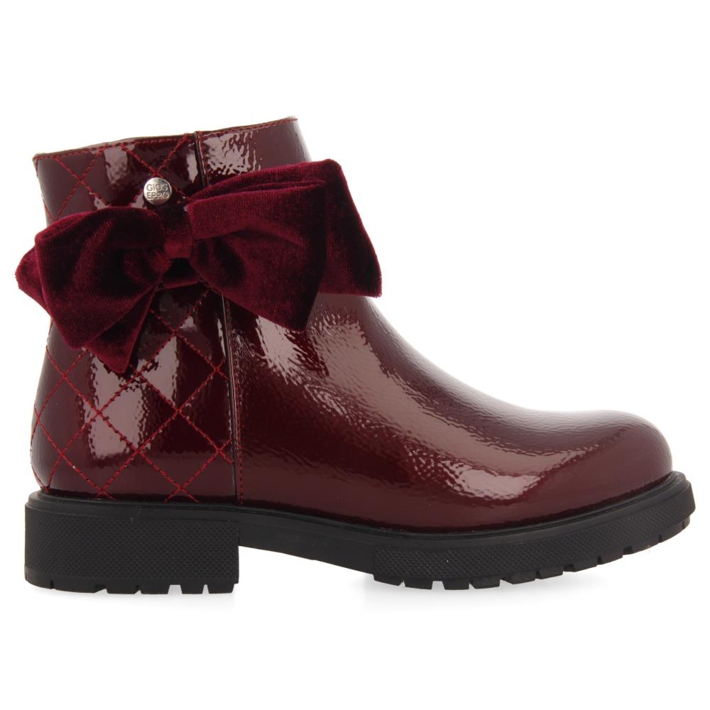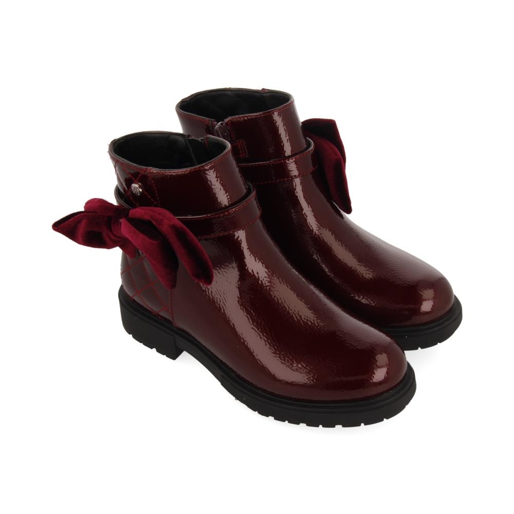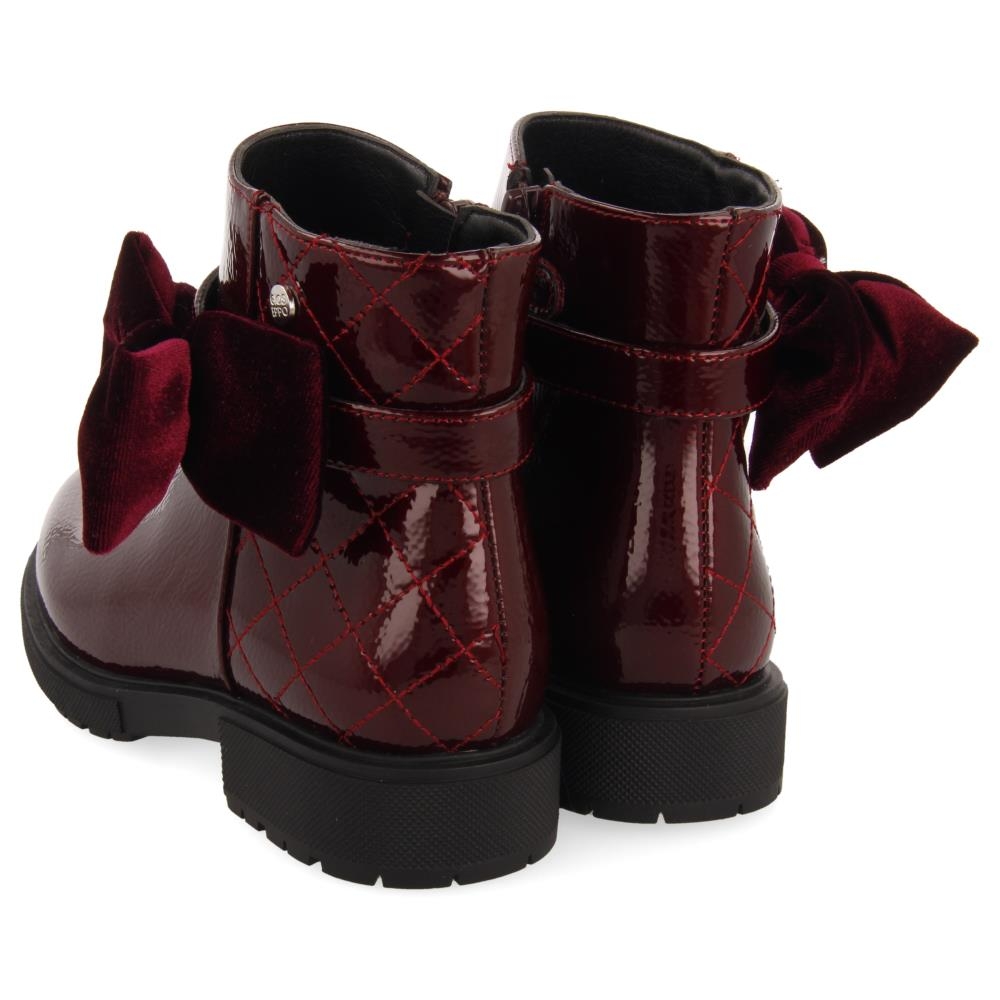 Botín bajo realizado en charol, cierre con cremallera lateral para que el calce sea más cómodo y rápido.