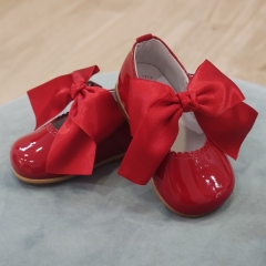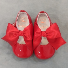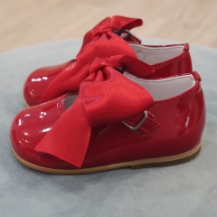 Clásica mercedita realizada en charol, cierre de hebilla y lazo de quita/pon.