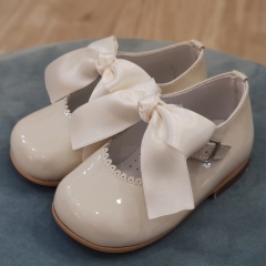 Clásica mercedita realizada en charol, cierre de hebilla y lazo de quita/pon.