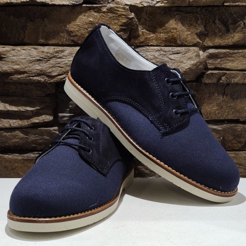Blucher combinado, realizado todo en piel tanto interior como exterior y combinado en lino en la parte delantera. Parte trasera y laterales en piel serraje.