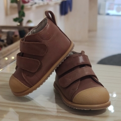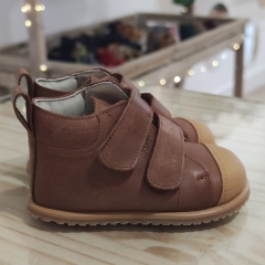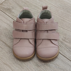 Botín de piel, interior y exterior, con cierre de velcros, suela plana ( sin drop ), muy fina y totalmente flexible.