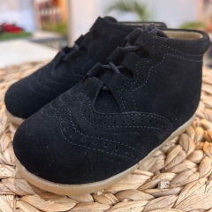 Botín serraje con lengüeta y cierre de cordones, interior forrado en piel.