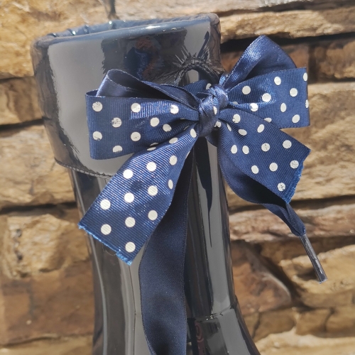 Bota de agua acabado brillo con detalle de lazo de raso, interior forrado en textil, plantilla confort extraible,