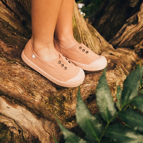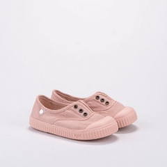 Zapatillas de lona realizadas 100% algodón, sin cordones y con goma delantera en empeine.