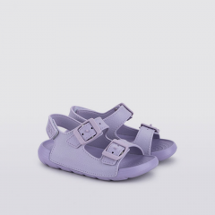 Sandalia de estilo bio con cierre de hebilla y sujeción trasera adherente.