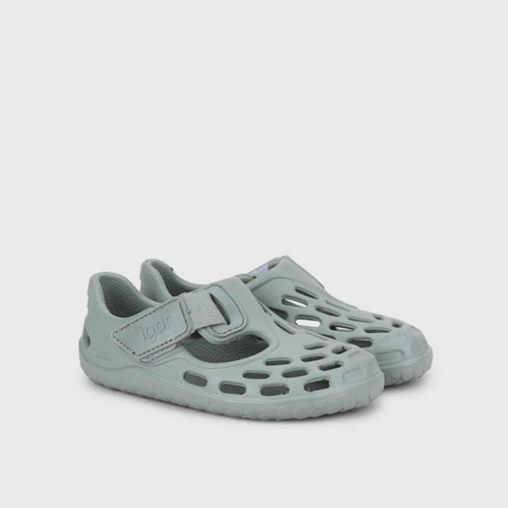 Sandalia monocolor de E.V.A. súper ligera diseñada en concepto barefoot medium, cero drop, flexible, blandita, y con cierre adherente.