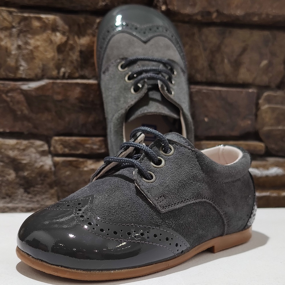 Zapato realizado en piel, combinado charol y ante. Interior también forrado en piel.