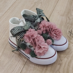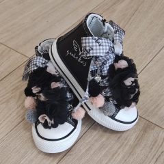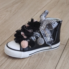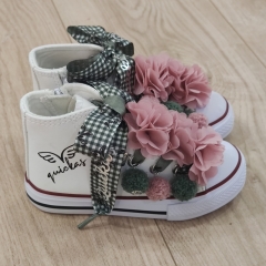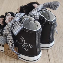 Botines de polipiel, con abalorios en tonalidades gris y naranja.