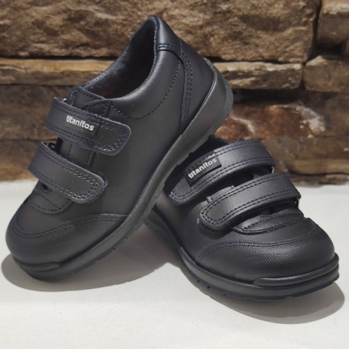 Zapato escolar realizado en piel lavable hidrofugada, con cierre de dos velcros para un mayor ajuste y  un calce más  cómodo  y rápido. Puntera y talón reforzados para una mayor resistencia.