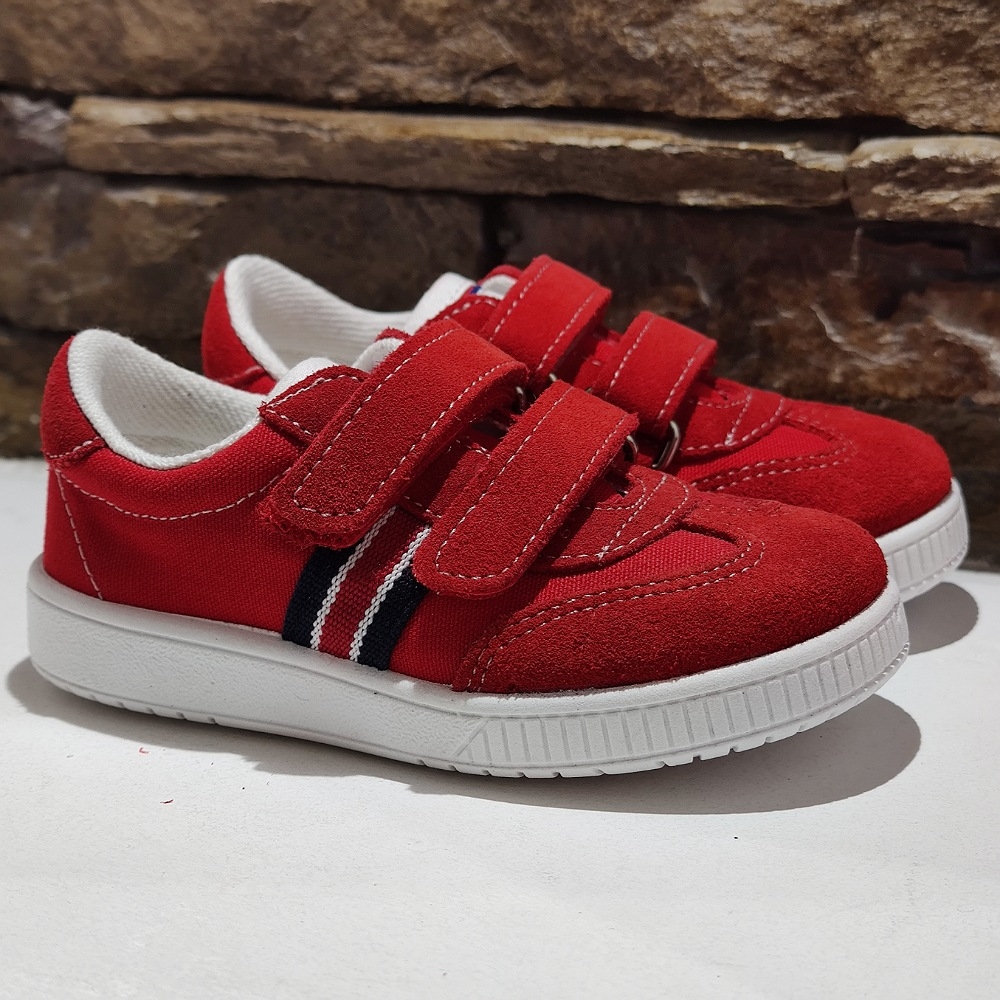 Deportiva super estilosa para completar un estilo casual, combinada en piel serraje y textil, cierre con dos velcros para un calce más rápido y cómodo, a partir del número 35 en lugar de velcro viene con cordones.