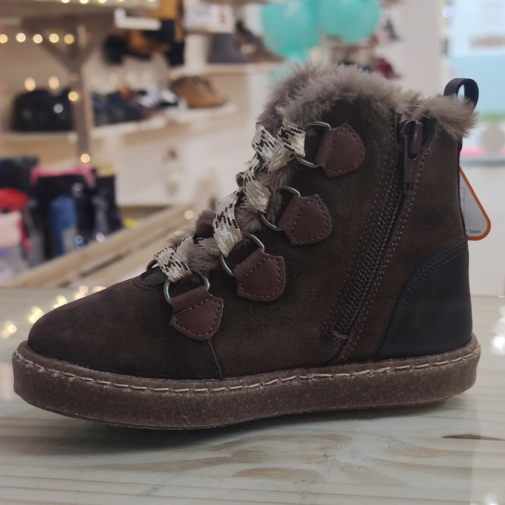 Botín de piel serraje con interior forrado en pelo.