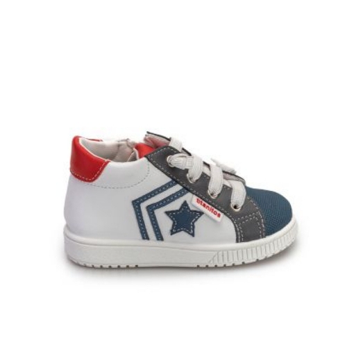 Deportiva piel lavable con refuerzo delantero, cierre con cordón elástico y cremallera lateral.