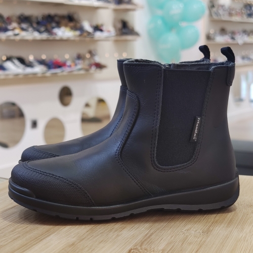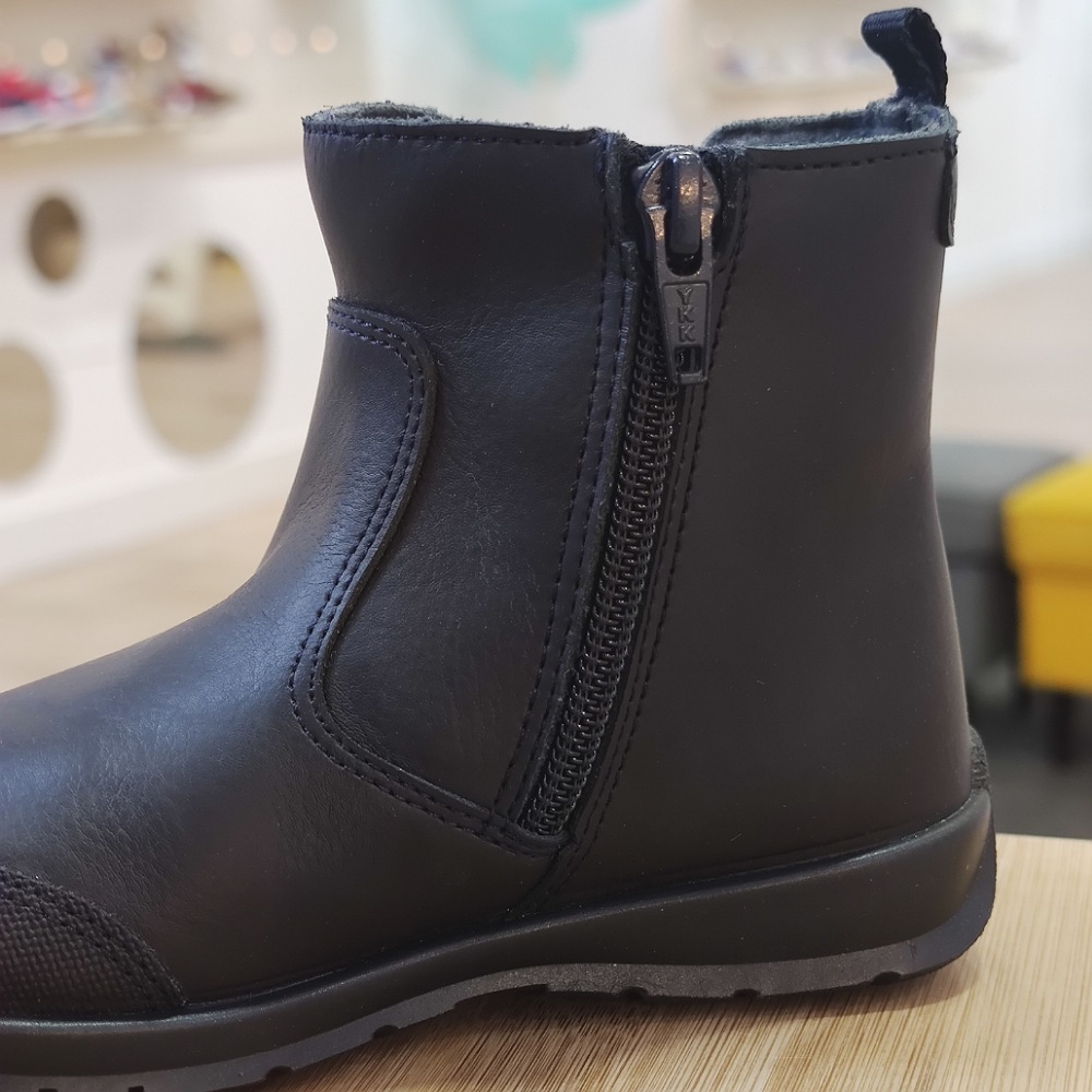 Botín de piel hidrofugada, cierre con cremallera lateral, puntera reforzada para una mayor resistencia.