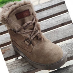 Botín realizado su exterior en piel serraje, con forro interior en pelo super calentita, cierre con cordones y cremallera lateral interior para un calce más fácil y rápido.