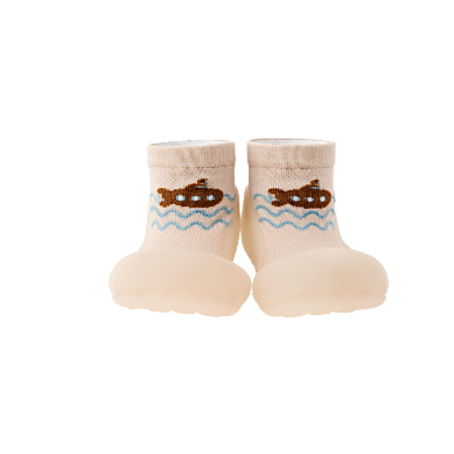 Attipas SUBMARINE BEIGE en tejido Aqua-X es un escarpín respetuoso para gateo y primeros pasos, pensado para acompañar al bebé en verano con comodidad, frescura y libertad de movimiento. Su diseño de caña baja, a la altura del tobillo, lo convierte en una opción ligera, práctica y fácil de llevar en los días de calor.