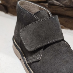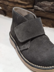 Botín safari realizado en piel serraje en color granate con interior forrado también en piel.