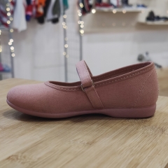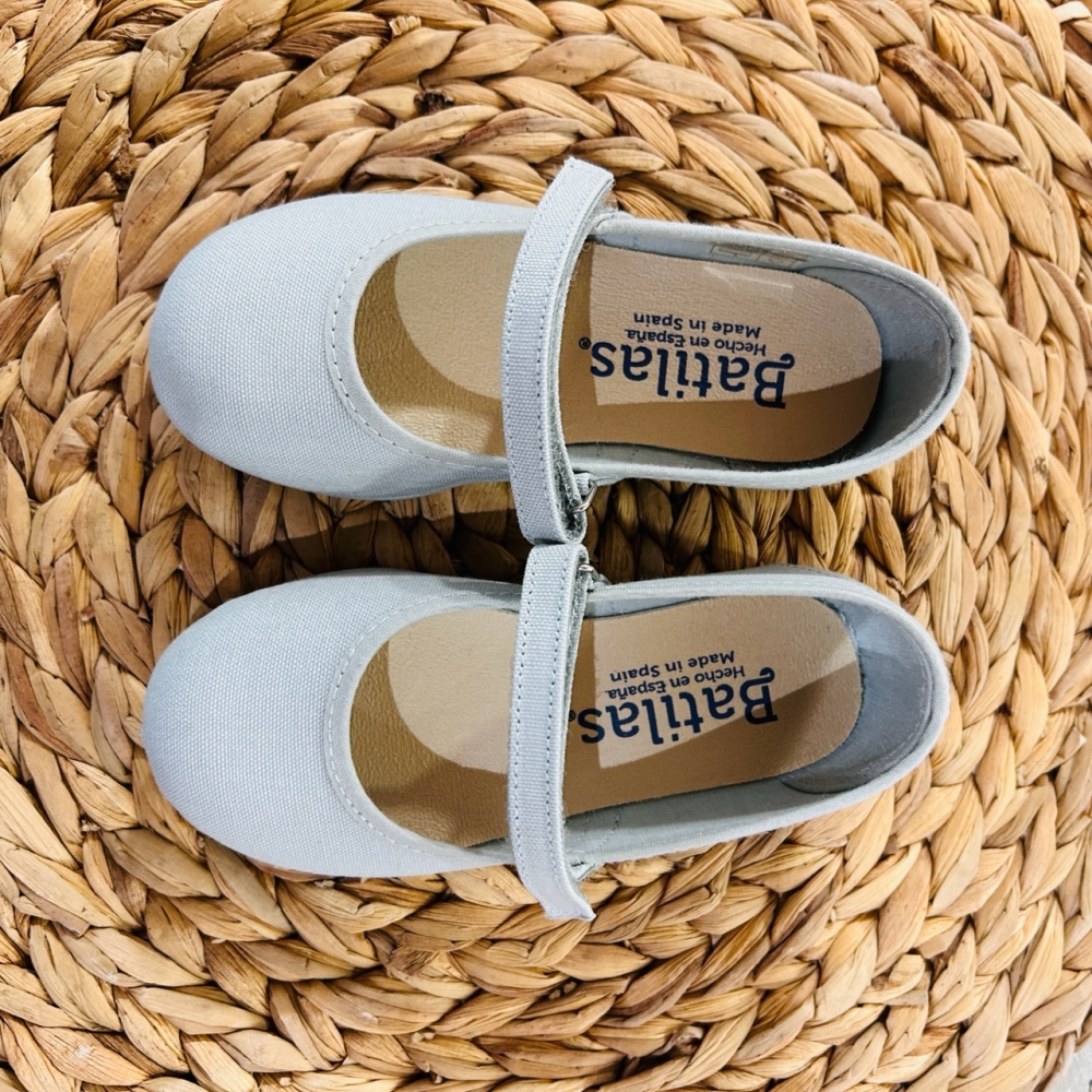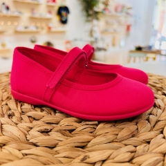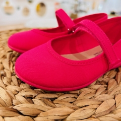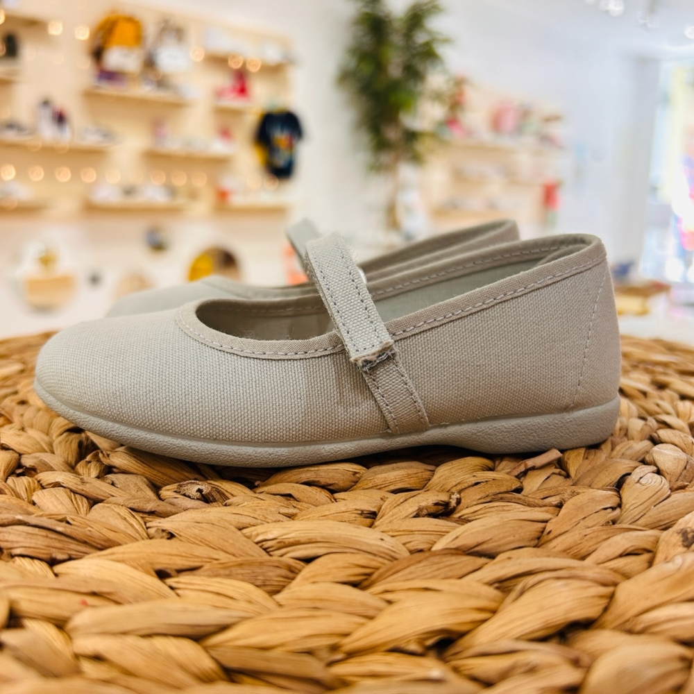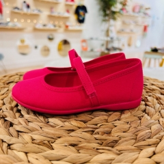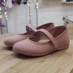 Mercedita de loneta, con cierre de velcro para un mayor ajuste, suela de goma antideslizante y muy flexible.