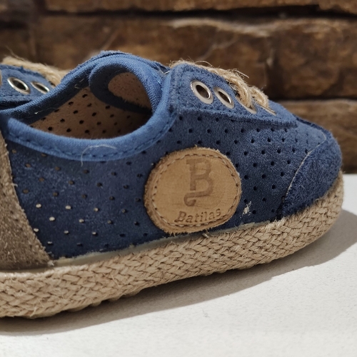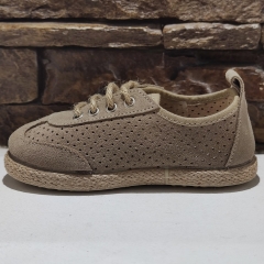 Blucher realizado en serraje perforado, con cinta simulando suela de esparto.