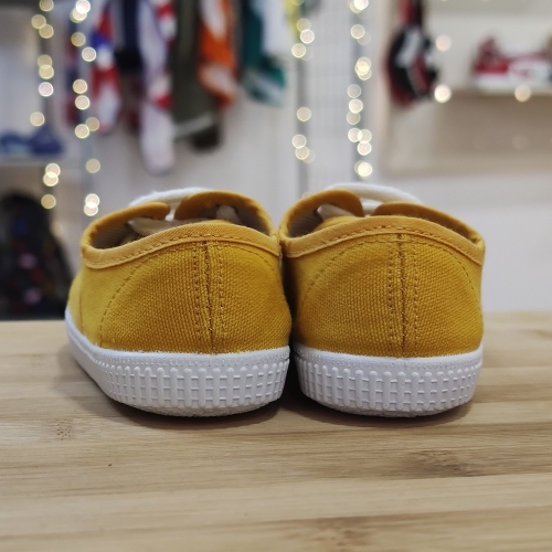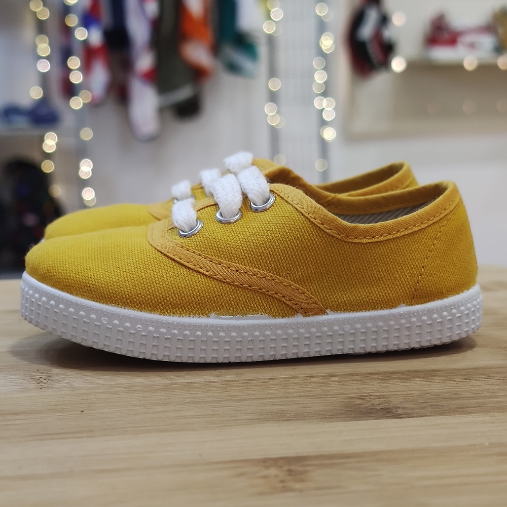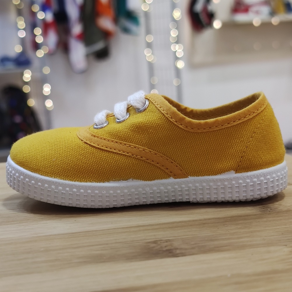 Loneta algodón ecológico, realizado con tejidos orgánicos y reciclados, con cierre de cordones para una mayor sujeción, suela de goma antideslizante muy flexible.