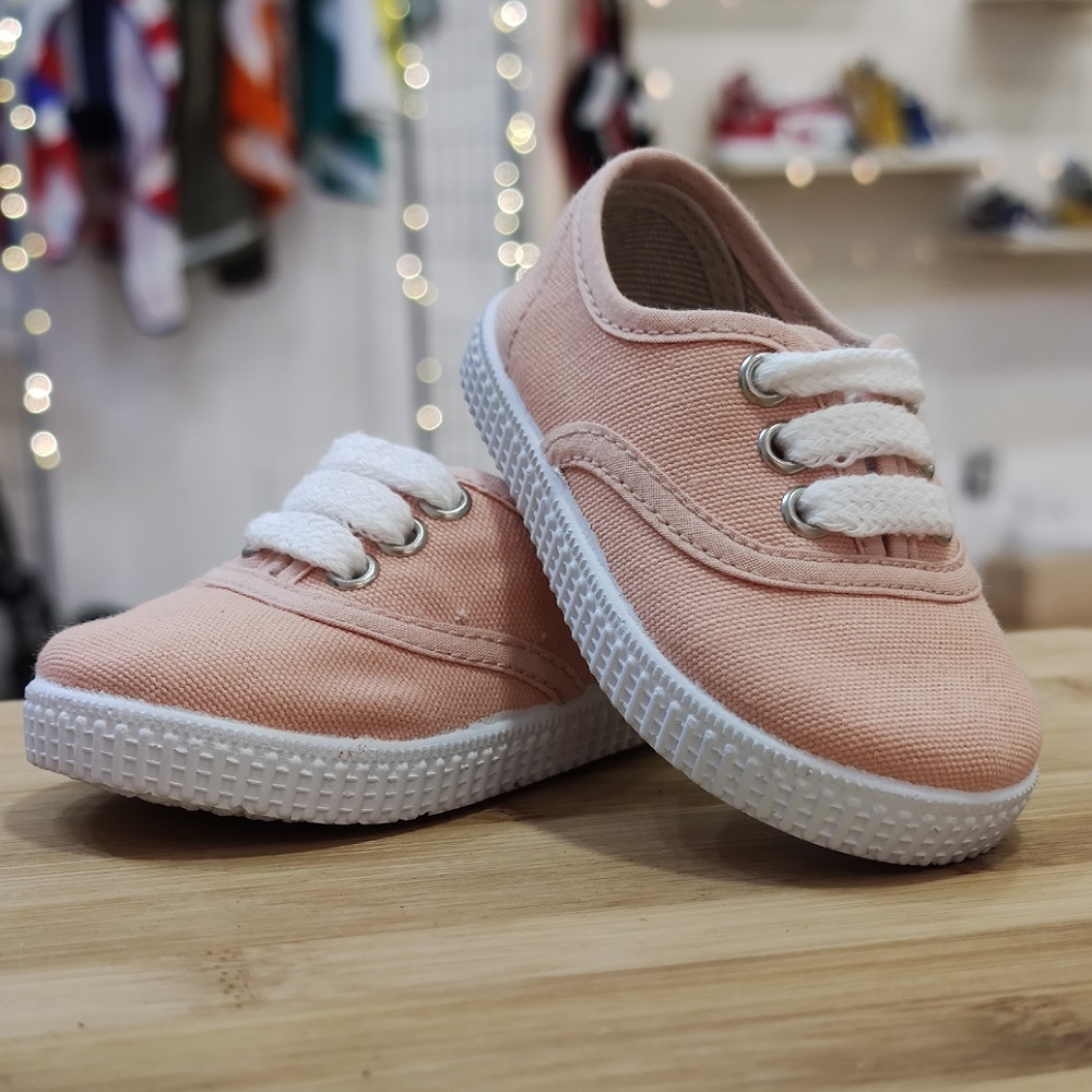 Loneta algodón ecológico, realizado con tejidos orgánicos y reciclados, con cierre de cordones para una mayor sujeción, suela de goma antideslizante muy flexible.