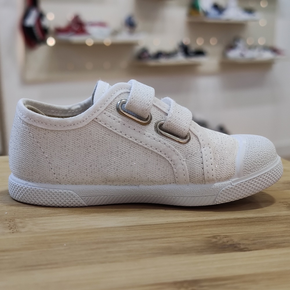 Loneta algodón con cierre de dos velcros para que ponerlas sea más rápido y cómodo, con una gran abertura para el calce, tiene una horma muy buena para esos pies mas anchos, se adapta perfectamente.