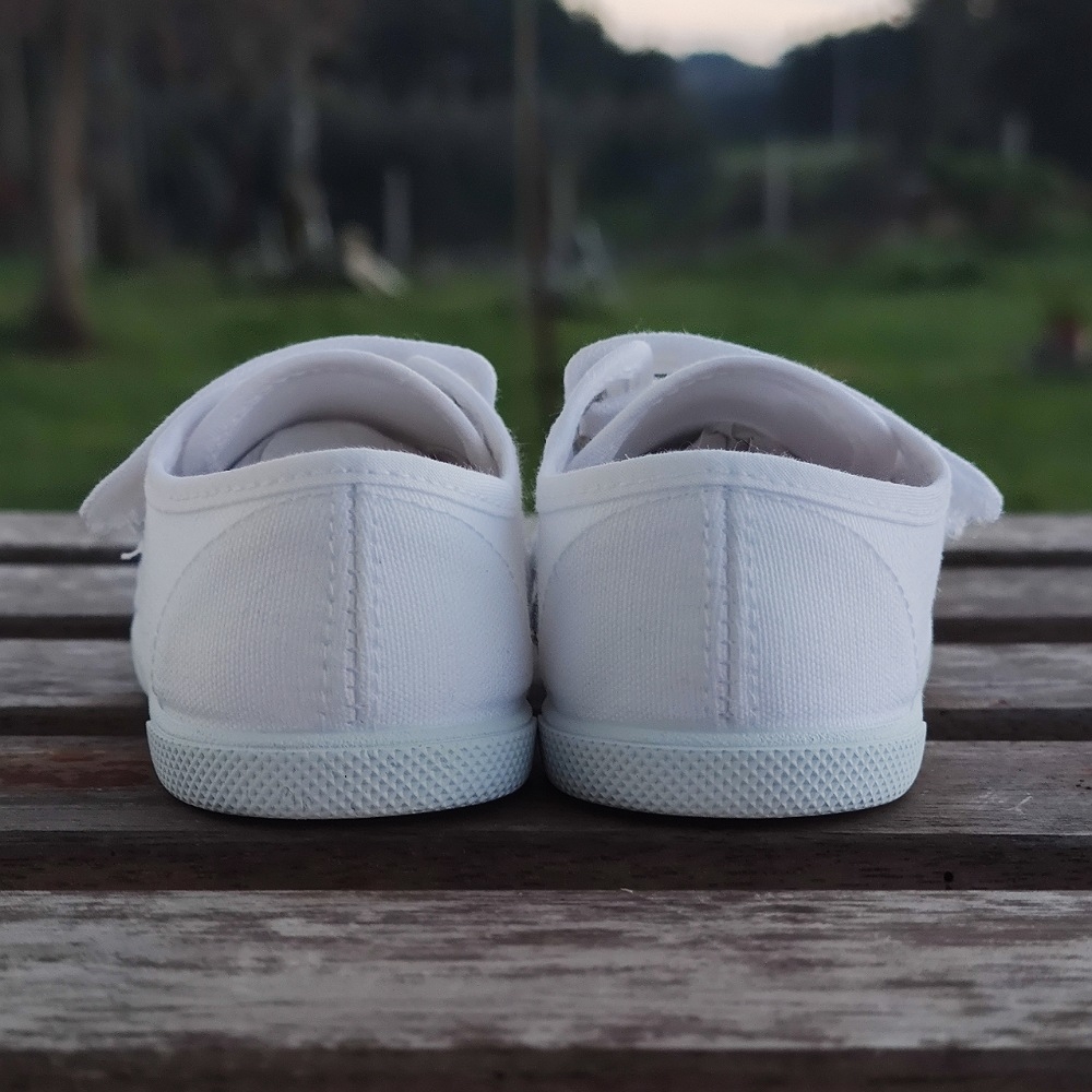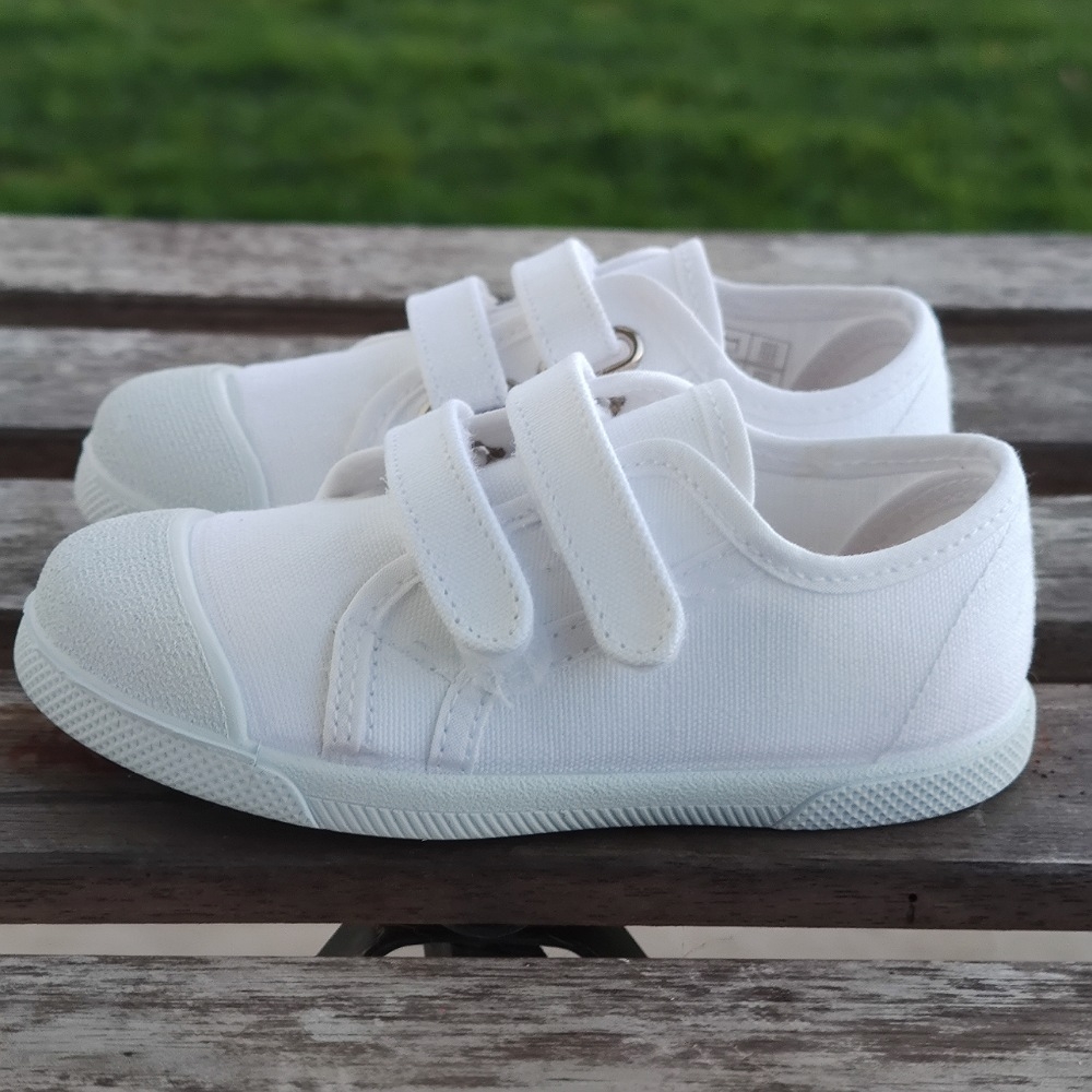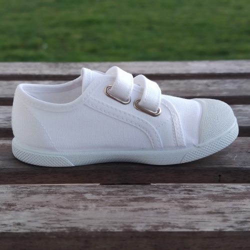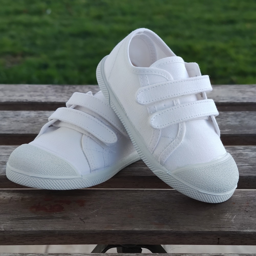 Loneta algodón con cierre de dos velcros para que ponerlas sea más rápido y cómodo, con una gran abertura para el calce, tiene una horma muy buena para esos pies mas anchos, se adapta perfectamente.