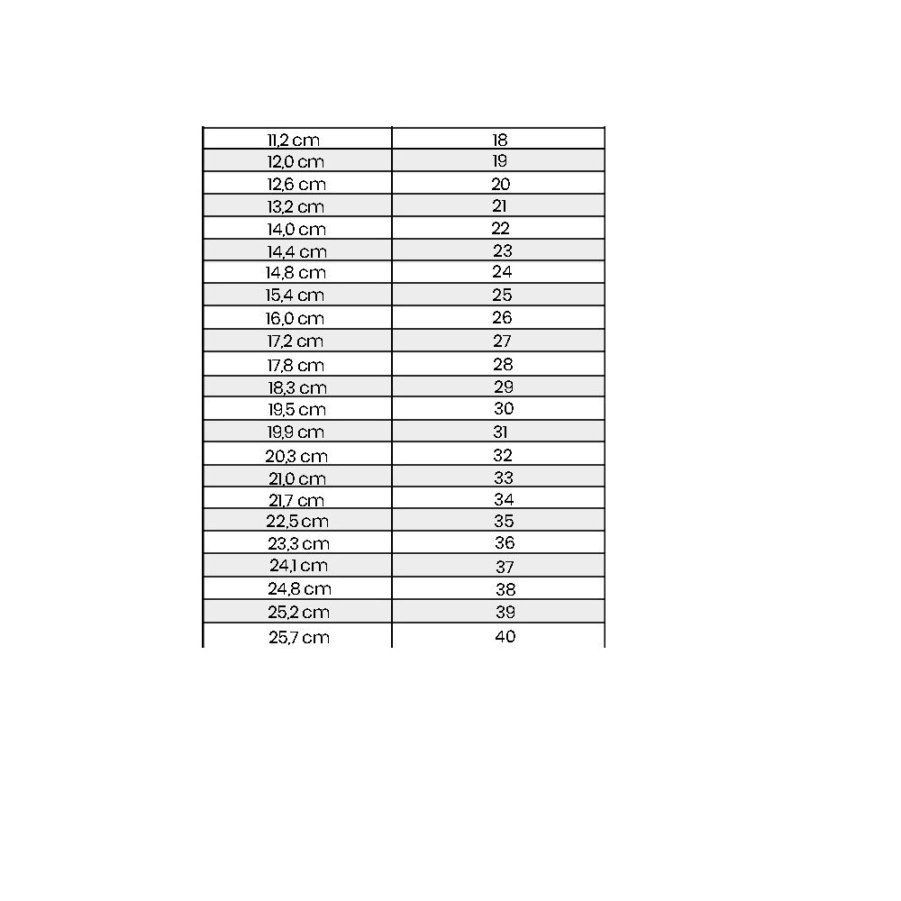 La guía de tallas se muestra en la última foto y la medida se corresponde con el largo de la plantilla.