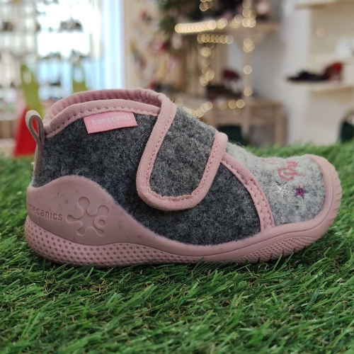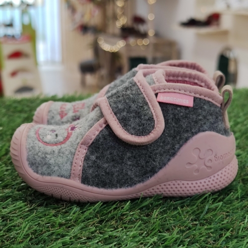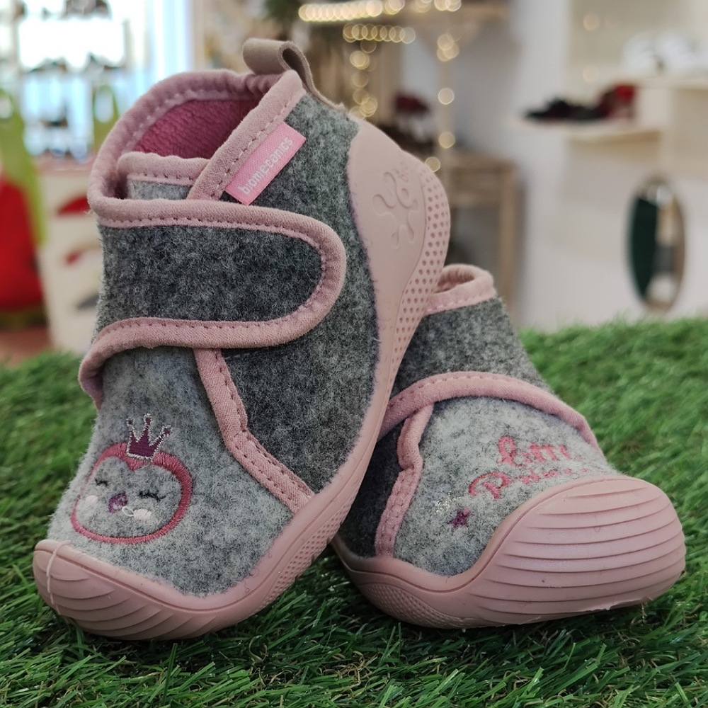 Zapatilla fabricada 100% con fibra natural en textil de lana con forro interior textil, plantilla de piel antibacterias extraíble.
