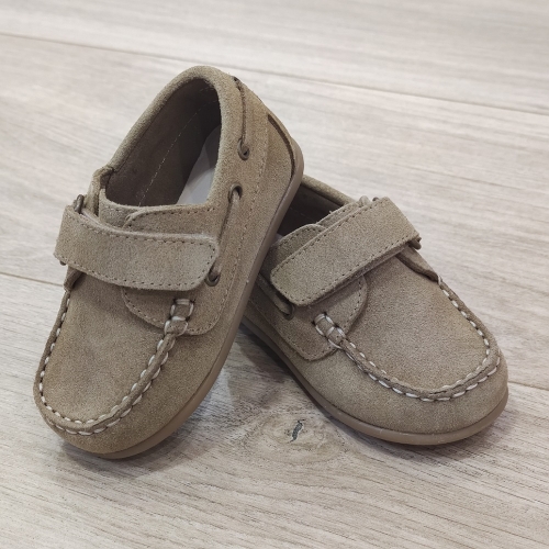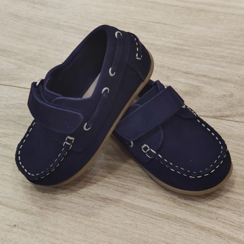 Zapato mocasín realizado en serraje con interior forrado en su totalizad en piel. Cierre con velcro para que vayan más sujetos, ya que es un estilo de zapato que se descalza con facilidad.