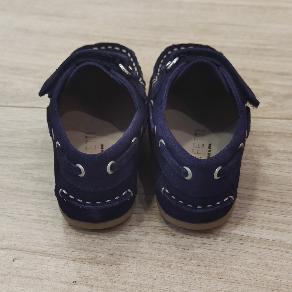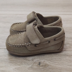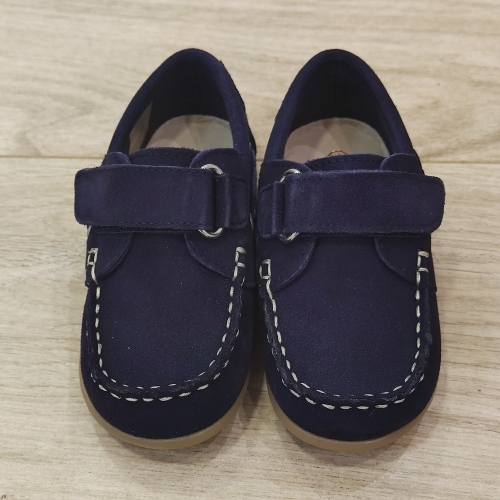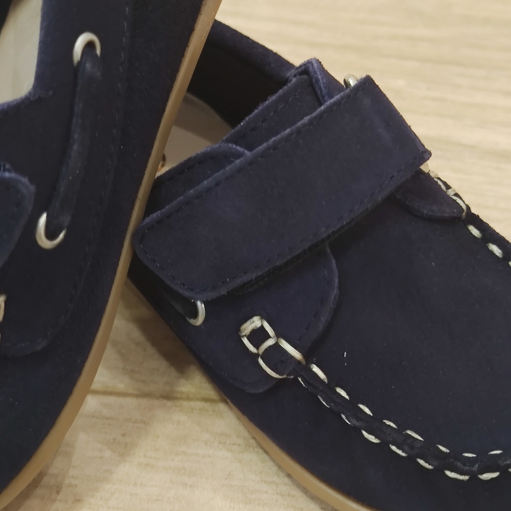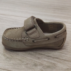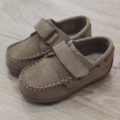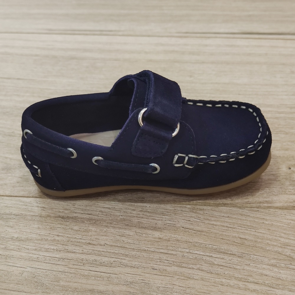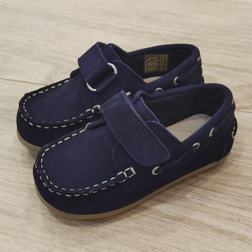 Zapato mocasín realizado en serraje con interior forrado en su totalizad en piel. Cierre con velcro para que vayan más sujetos, ya que es un estilo de zapato que se descalza con facilidad.