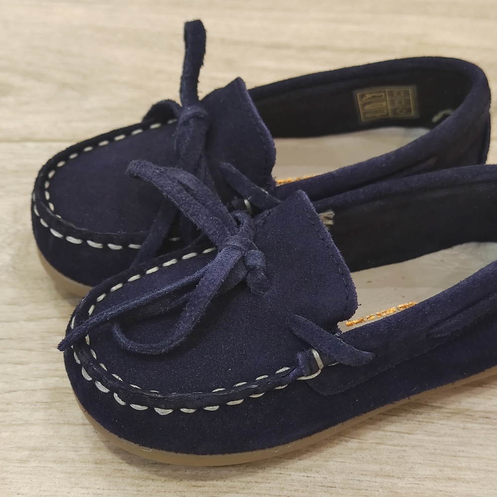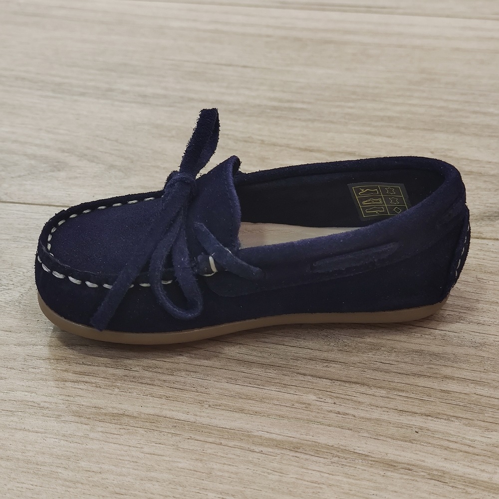 Zapato mocasín lazo realizado en serraje con interior forrado en su totalizad en piel.