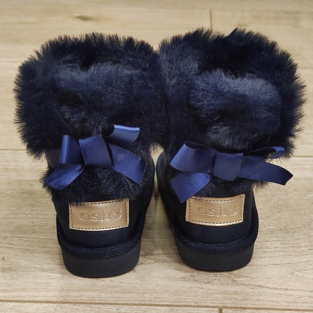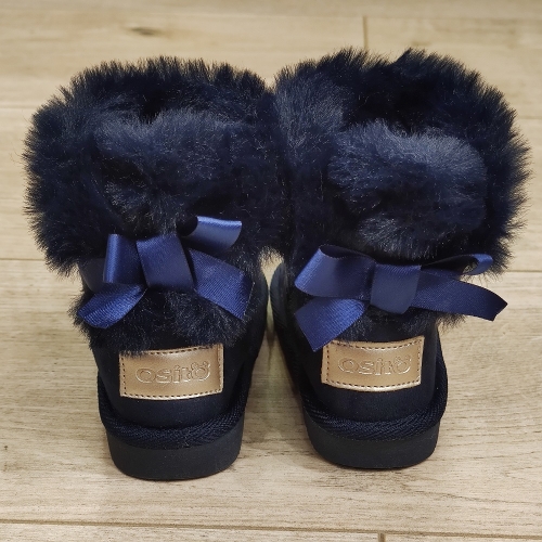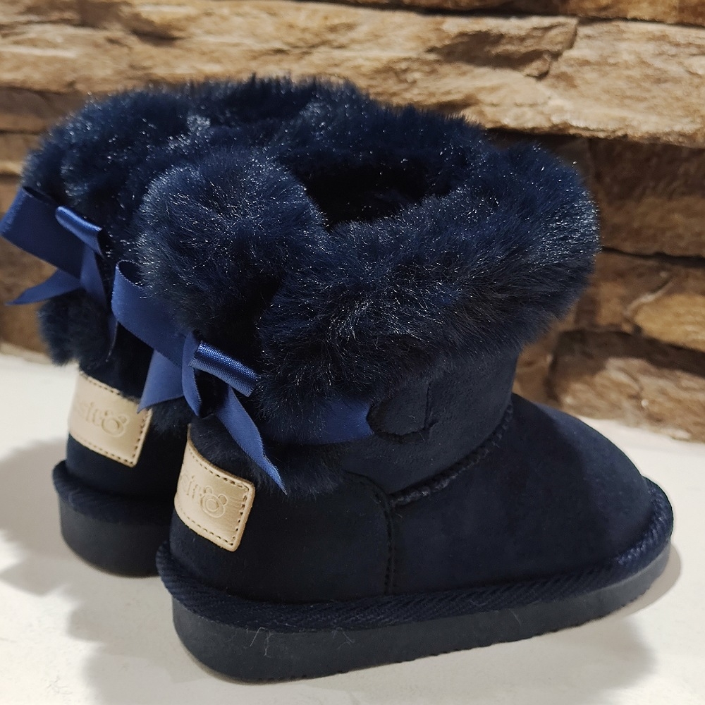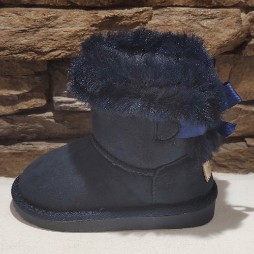 Botín forrado en pelo con adorno de lazo en la parte trasera, realizadas en microfibra con water repellent para el agua.