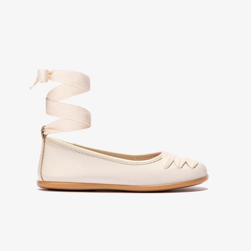 Bailarinas de napa. Tira de algodón para atar a la pierna o al tobillo y también adorna la parte delantera. Suela de goma para mayor comodidad y confort. Estas bailarinas son el calzado ideal para cualquier ocasión o evento.