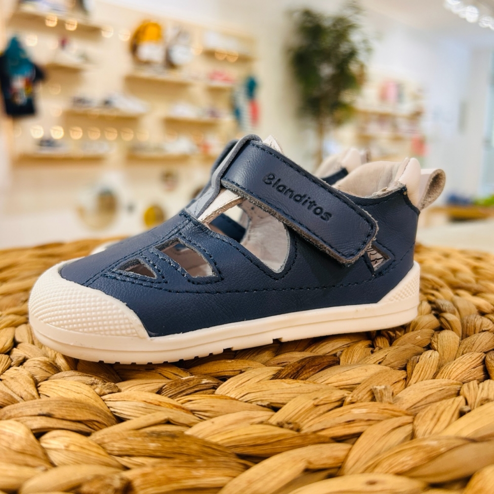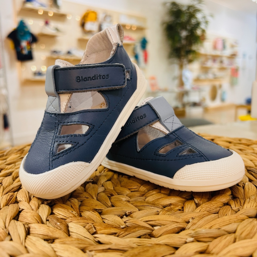 Sandalia respetuosa con el pie de los más pequeños. Suela plana (sin drop), muy ligera y antideslizante.