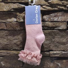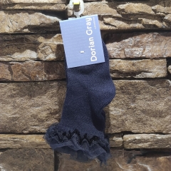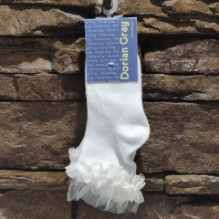Calcetín liso de algodón con puntilla y tul en el puño. Es un modelo muy versátil ya que tanto nos encaja para un zapato arreglado como una loneta.
