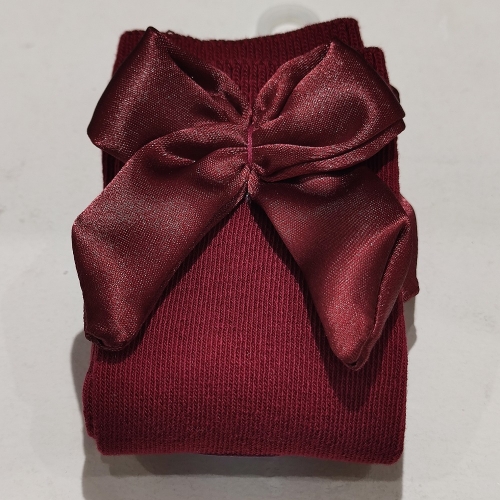 Calcetín alto liso con adorno de lazo de raso en 3D, muy coqueto y elegante
