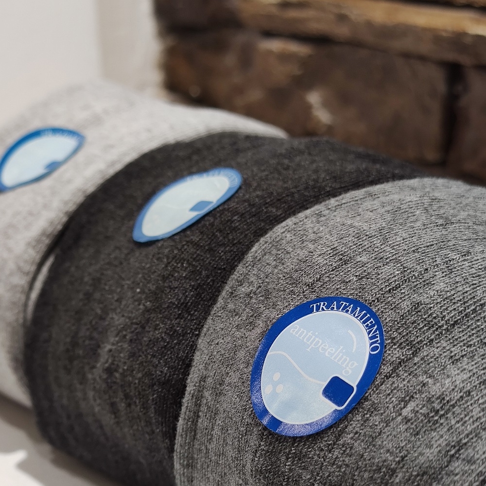 Llevan un tratamiento antipeeling para que no saquen bolitas y puntera remallada sin costura para que no les haga daño en los pies al calzarse.